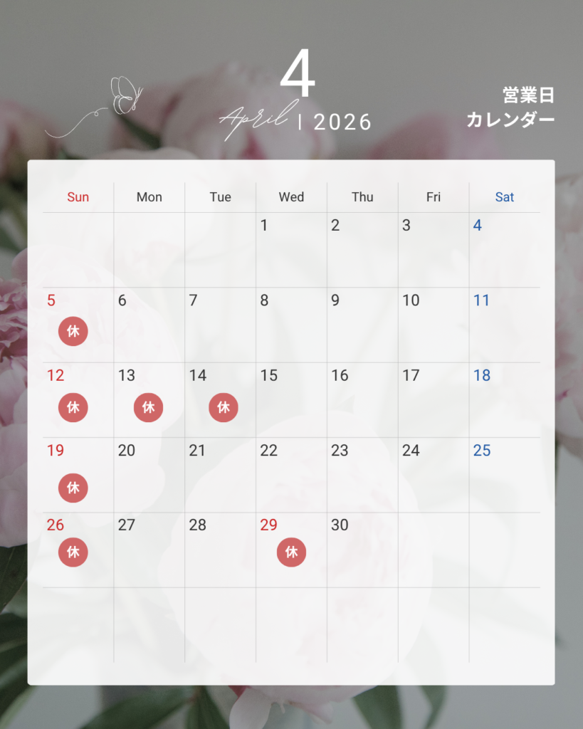 4月の営業日のお知らせです。