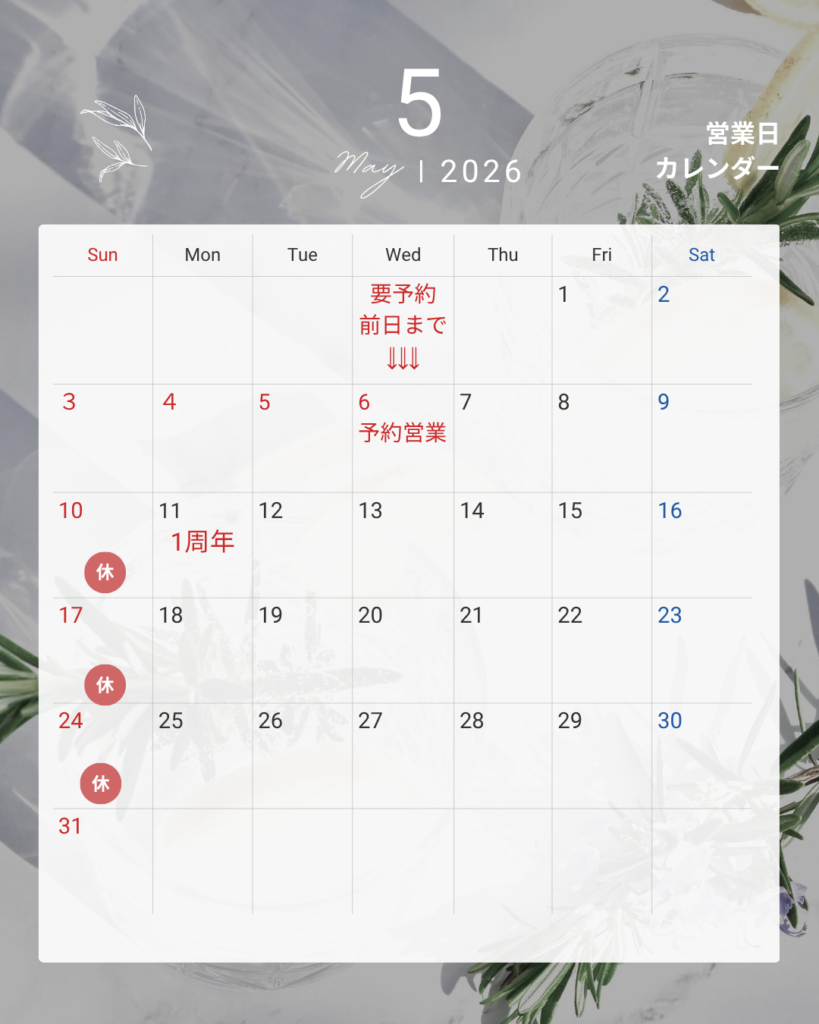 6日(水)はご予約を頂いた場合のみ営業といたします。